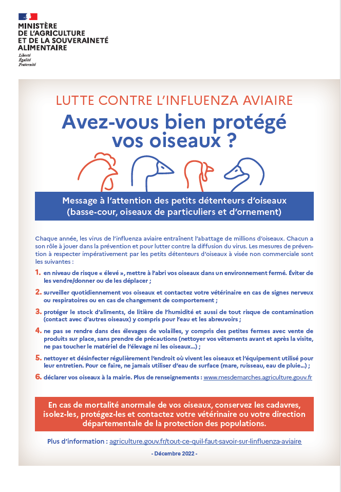 Ensemble, restons vigilants pour préserver la santé de nos oiseaux et limiter la propagation du virus.
