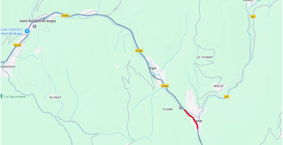 CIRCULATION RÉGLEMENTÉE RD1504 du PR 20+700 au PR21+300 viaduc de Tenay PLAN
