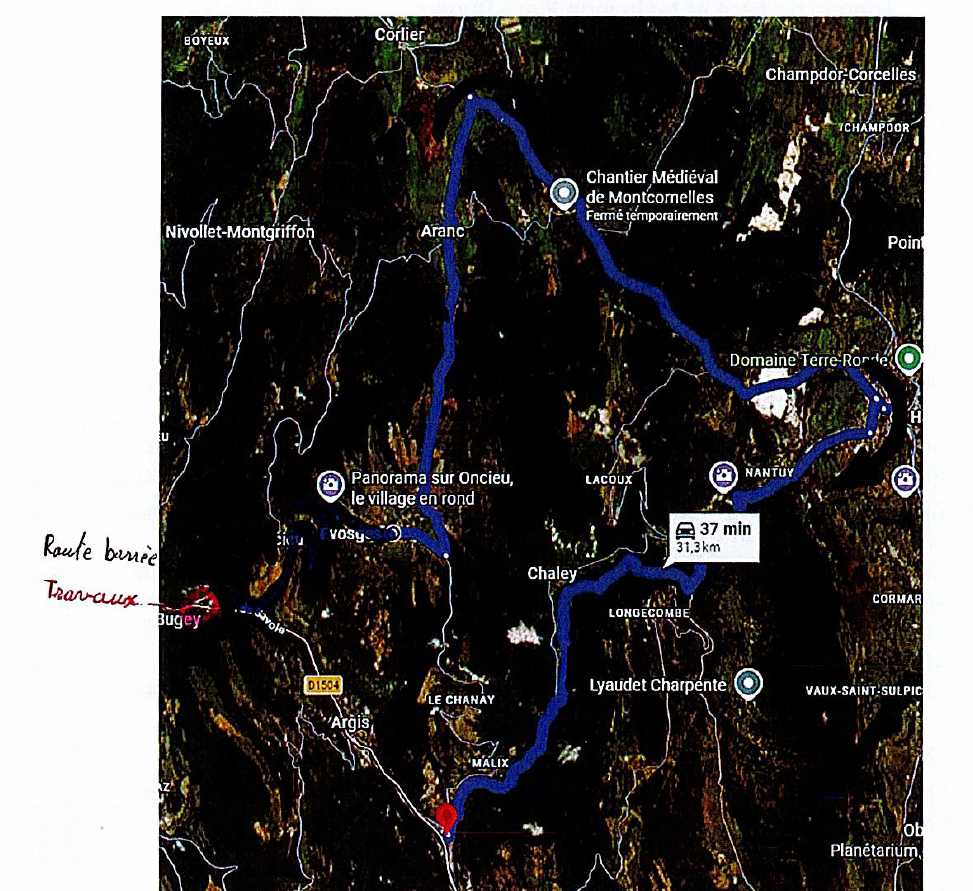 Une déviation sera mise en place pour tous les véhicules en empruntera les voies suivantes : RD34, RD102, RD8, RD21, et RD1504 PLAN