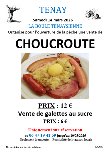 VENTE DE CHOUCROUTE ET GALETTE par l’association LA BOULE TENAYSIENNE