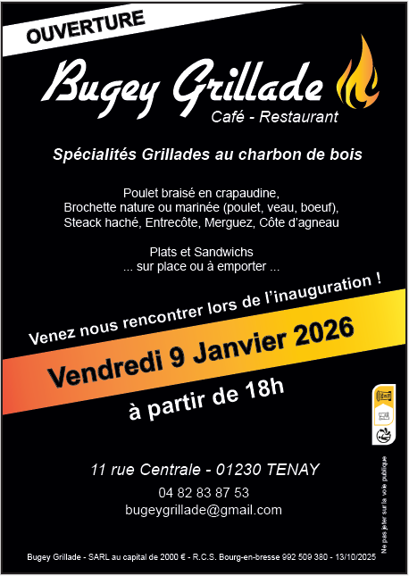 Le vendredi 09 janvier, le restaurant Bugey Grillade sera officiellement inauguré au 11 rue Centrale.