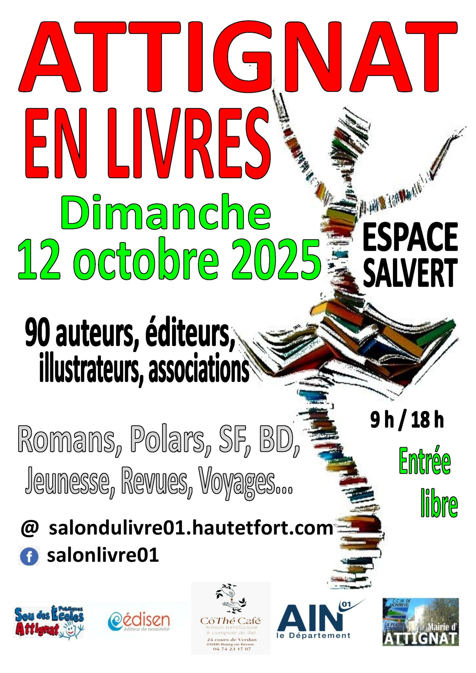 Le 12 octobre prochain, se déroulera à Attignat, le traditionnel Salon du Livre des Pays de l’Ain, « ATTIGNAT EN LIVRES ».